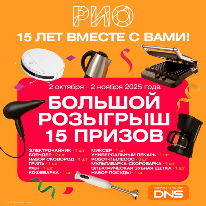3. Приходите 2 ноября 2025 года на День Рождения ТРЦ РИО на розыгрыш призов! Розыгрыш состоится с 16:30 до 18:30 по московскому времени. Личное присутствие обязательно***.