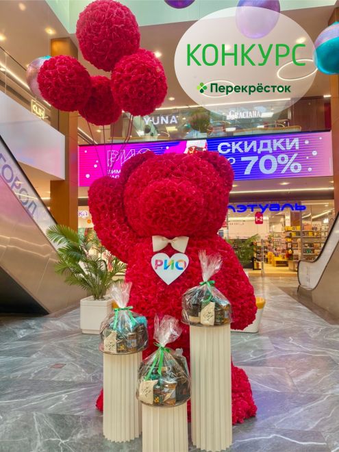 2. Сделайте свое фото с классным медведем на 1м этаже и выложите у себя в аккаунте в Вконтакте с подписью "Участвую в конкурсе РИО"